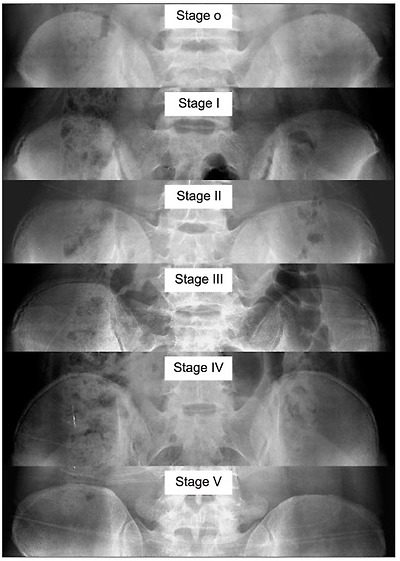 リッサーサインは、骨盤の腸骨稜(ちょうこつりょう)の骨化の程度を0から5までの6段階で評価します。